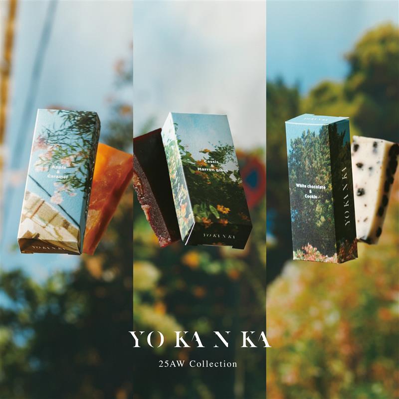 リンゴとキャラメルのヨウカンカ、カシスとマロングラッセのヨウカンカ、ホワイトチョコレートとクッキーのヨウカンカが1つずつ入った3個セットです。25AWコレクション「Normal」から生まれた季節限定商品を集めました。